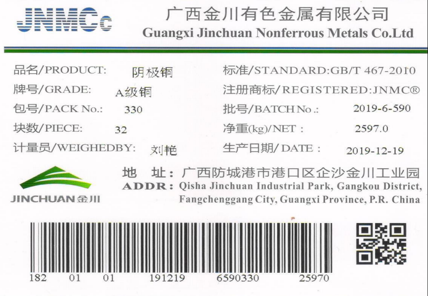 11月11日,上海期貨交易所(下稱上期所)子公司上海國際能源交易中心(下稱上期能源)發(fā)布了國際銅期貨合約及相關(guān)規(guī)則,根據(jù)《上海國際能源交易中心交割細(xì)則》《上海國際能源交易中心陰極銅期貨合約》和《國際銅交割商品注冊管理規(guī)定》等有關(guān)規(guī)定,金川銅【品牌:JNMC-A級銅(傳統(tǒng)電解),規(guī)格:1030*1000*15】和廣西銅【品牌:JNMC(防城港/永久陰極-K)A級銅(永久陰極-K),規(guī)格:1030*1010*10】成為首批國際銅期貨可交割品牌,更好的增加了金川集團(tuán)銅產(chǎn)品的貿(mào)易渠道及轉(zhuǎn)口業(yè)務(wù)、進(jìn)口業(yè)務(wù)的便利性和安全性。